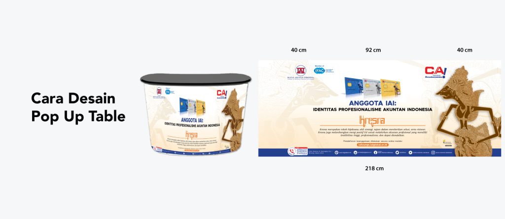 - Pilihlah pop up table yang memiliki space poster di bagian keliling.